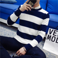 莞馨(wanxin)新款16年秋冬毛衣男装针织衫韩版修身毛衫套头条纹长袖卫衣港风毛衣男