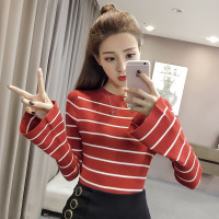 珂依舍2017秋装新款2017新款撞色条纹针织衫微喇毛衫