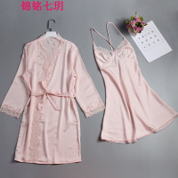 锦铭七玥维密新款重工刺绣仿真丝睡袍女性感诱惑吊带睡裙两件套女居服