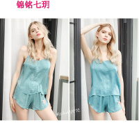 锦铭七玥维秘同款刺绣花边丝绸缎吊带短裤睡衣套装女士居服睡衣