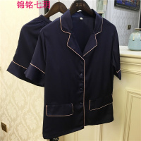 锦铭七玥新款丝绸睡衣套装短袖短裤居服翻领开衫睡衣女夏仿真丝
