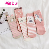 锦铭七玥秋冬卡通女袜纯棉中筒立体耳朵学生袜大童袜全棉日系棉袜批发