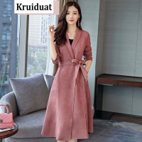 奈琴尔2017秋季新款韩版翻领纯色长款女式风衣 女外套 铁秀红 M