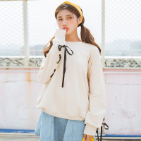 薇侣2017新品秋装新款女卫衣韩版潮织带拼接宽松套头学生上衣女外套
