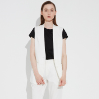 旗下2017秋冬新款卡其色天丝马夹中长款无领修身西装马甲女外套白色