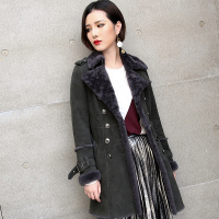 2018冬季新款真皮羊毛皮毛一体女外套风衣中长款双排扣