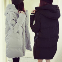 白鸭绒纯色简约连帽羽绒服女宽松新款冬中长款加厚外套潮