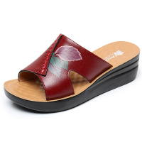 2026春夏款头层牛皮复古镂空女靴软底舒适镂空透气粗跟妈妈鞋凉靴