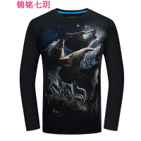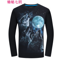 锦铭七玥3D狼图春季新款男士长袖T恤衫加肥加大码男装休闲学生圆领上衣潮