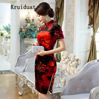Kruidvat 奈琴尔秋冬季民族风碎花连衣裙唐装气质丝绸复古改良修身日常款旗袍QZL