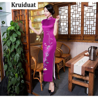 Kruidvat 奈琴尔2016春秋冬新款优雅气质长款真丝包臀旗袍裙复古桑蚕丝礼服女CY
