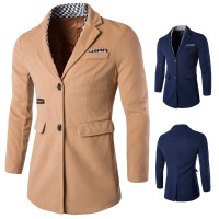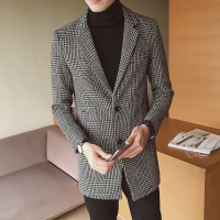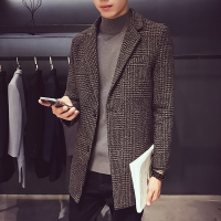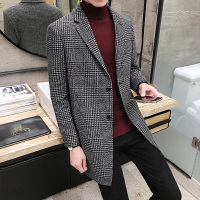 秋冬装韩版修身中长款千鸟格毛呢风衣大衣时尚男装男士外套