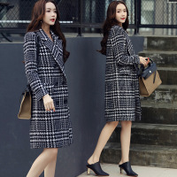 莞馨(wanxin)新款毛呢外套女2016秋冬新款女装韩版修身中长款千鸟格羊绒呢子大衣女