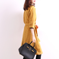 简约轻奢麂皮绒大衣中长款女秋冬新款精典千鸟格插肩袖风衣外套