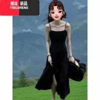 YIBUSHENG黑色吊带连衣裙2024新款女法式长裙收腰显瘦气质高级感A字裙子