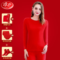 浪莎女士本命年内裤女大红棉质三角裤龙年结婚喜庆袜子透气宽松组合装 1保暖套装+2内裤+2棉袜) XXL/175