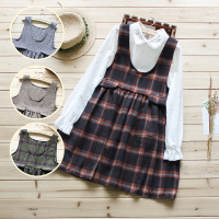 娉语森女系秋冬新款高腰复古显瘦毛呢背带裙英伦学院风无袖格子连衣裙