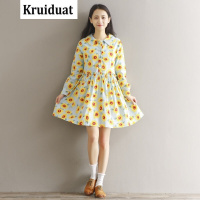 Kruidvat2017春季新款文艺太阳花抽褶大摆裙森女连衣裙棉麻长裙B030黄色