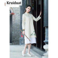 Kruidvat2017春季长袖棉麻连衣裙女森系显瘦亚麻女装长裙B030白色均码