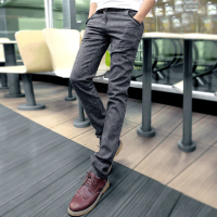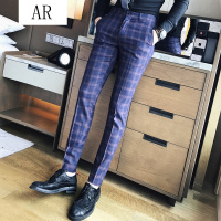 青年裤子秋季薄款长裤休闲商务英伦格子修身小脚潮男时尚韩版西裤