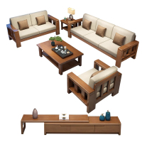 中豫鑫泽ZYXZ3112210简约实木沙发茶几组合 1+2+3+长茶几+方几+电视柜