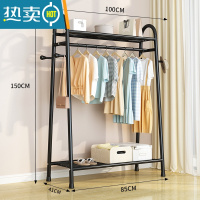 敬平落地挂衣架折叠晾衣架宿舍用室内卧室凉衣服杆架子学生家用晒衣架 150cm-黑[升级7挂钩]双层置物网 中
