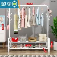 敬平落地挂衣架折叠晾衣架宿舍用室内卧室凉衣服杆架子学生家用晒衣架 135cm-白[升级7挂钩]双层置物网 中