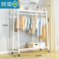 敬平简易晾衣架落地卧室内挂衣架折叠宿舍阳台收纳家用凉晒衣服杆架子 双层置物架-白-120CM