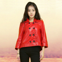 春秋海宁女士真皮皮衣短款双排扣绵羊皮外套修身CYDDWQE