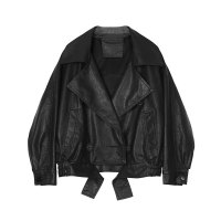 C机车皮衣女2018春季韩版双排扣夹克短款百搭宽松外套女黑色CYDDWQE