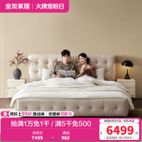 [U标·棋格床]全友家居主卧松木框架全纳帕皮软包双人床