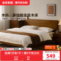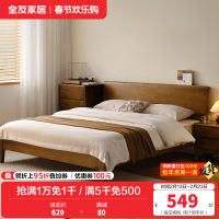 全友家居新中式卧室生态科技皮舒适软靠床屏橡胶木板木床双人床