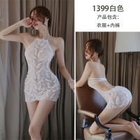 长夜漫漫情趣内衣女性感刺绣透明蕾丝挂脖露背仙女睡裙套装1399