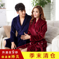 冬季女士睡袍浴袍保暖加长加厚情侣珊瑚绒睡衣裙男法兰绒浴袍宽松