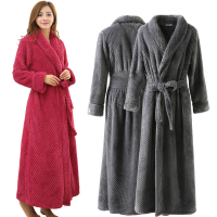 秋冬季加厚加长款法兰绒情侣睡袍男女士提花珊瑚绒浴袍保暖睡衣裙