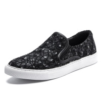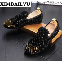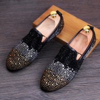 品牌欧洲站男士圆头皮鞋套脚懒人鞋平底时尚休闲鞋个性水钻男鞋磨砂一脚蹬乐福鞋夜店男鞋
