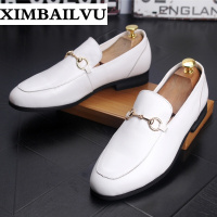 品牌男士素面小白鞋套脚时尚透气皮鞋英伦风男休闲鞋内增高乐福鞋简约舒适百搭豆豆鞋666白色+