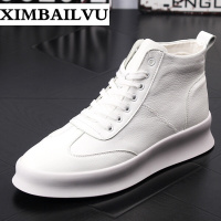 品牌男士高帮板鞋韩版简约百搭厚底白色皮鞋潮男百搭内增高休闲乐福鞋舒适透气高帮运动鞋