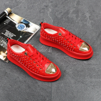 欧洲站红色铆钉男鞋厚底增高乐福鞋男韩版系带圆头板鞋发型师潮鞋