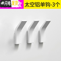 三维工匠简约北欧免打孔白色太空铝挂钩卫生间衣帽钩浴室挂衣钩后挂钩 白色-3个-太空铝-标准款送胶