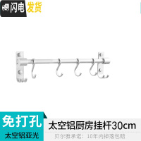 三维工匠免打孔太空铝厨房挂钩挂杆锅挂架排钩壁挂墙上置物架收纳用品勺子 [免打孔]30cm,4个钩