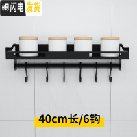 三维工匠卫生间置物架浴室用品免打孔洗手间洗漱台厕所阳台收纳架墙上壁挂 黑色太空铝层架带杆40+6钩浴室置物架