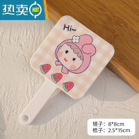 敬平可爱卡通少女心梳镜套装随身便携携带小镜子学生宿舍手持镜化妆镜便携式用镜 格子女孩