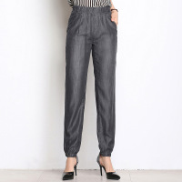 莱赛尔冰丝天丝男装裤子青少年港风宽松直筒牛仔裤松紧腰系带长裤