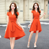 YIBUSHENG法式甜美泡泡袖娃娃领收腰a字连衣裙森系小个子拼接木耳边短款裙