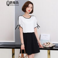 步来褶惠2017年夏季时尚百搭纯色修身中长款短袖甜美套装套裙连衣裙夏