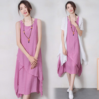 YIBUSHENG假两件连衣裙少女装2024新款初中高中学生甜美新中式旗袍长裙子
