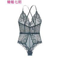 女士蕾丝透视比基尼连体衣绑带文胸吊带套装性感连体衣三点式情趣内衣透明丁字裤丝袜开档免脱女式情趣睡衣夏长夜漫漫成人用品