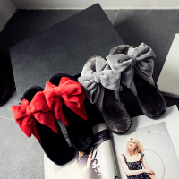 冬季秋季室内月子居家居情侣棉拖蝴蝶结女地板毛绒一字毛毛拖鞋女