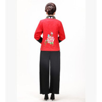 2017新款秋冬民族风女装短款棉麻外套中老年妈妈装唐装刺绣花套装
